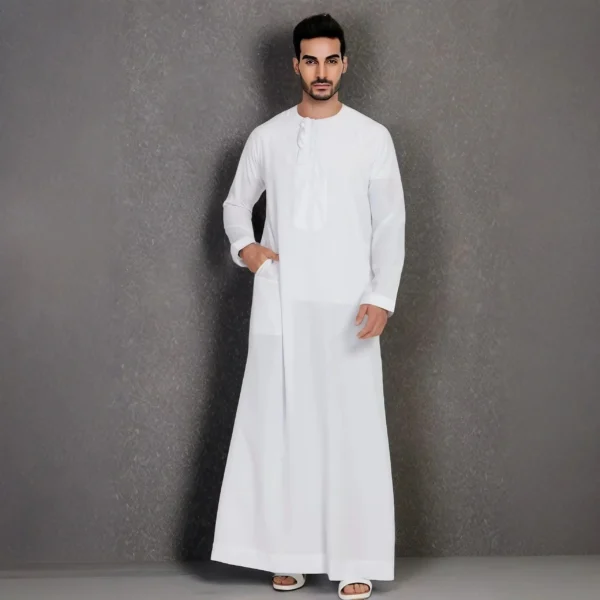 Round Neck White Thobe - Classic Simplicity & Spiritual Comfort