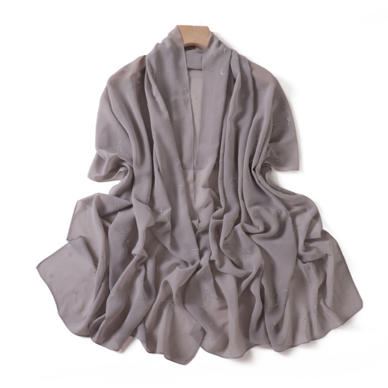 Embrace luxury and devotion with Salaam-Fashion's Agate Gray Hijab. Made from heavy-duty chiffon with rhinestones and a charming bow, it offers a high-end look. Ideal for prayer, Ramadan, and Hajj, it combines comfort, faith, and elegance.