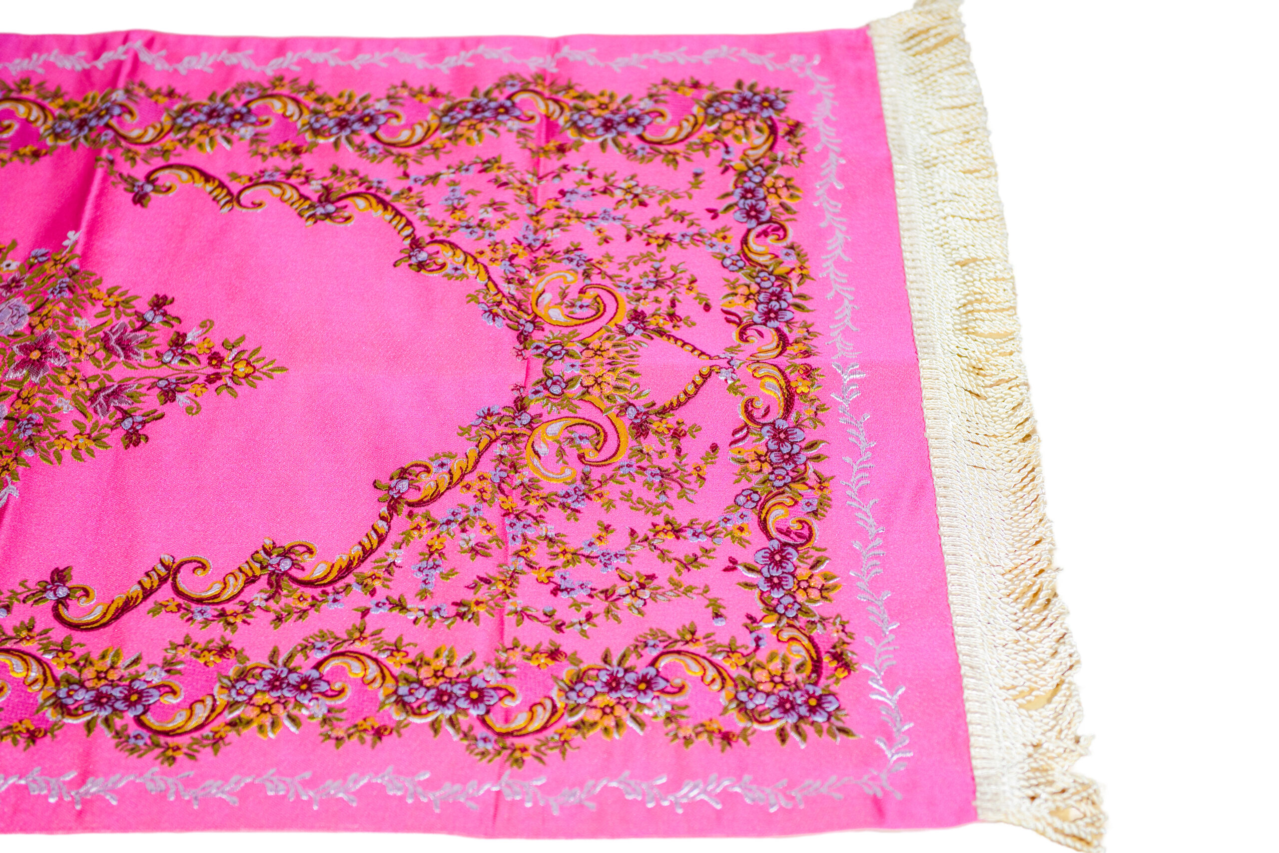 Introducing the Salaam-Fashion Embroidered Vase Design Prayer Mat, designed to bring a sense of comfort, devotion, and elegance to each prayer. This magenta prayer mat features an exquisite embroidered vase pattern, adding a vibrant and sophisticated touch to your spiritual environment. Crafted with soft and comfortable materials, it ensures a serene and stable experience during Ramadan, Hajj, or daily prayers. The 70x110 cm size is perfect for creating a tranquil space, enhancing your connection with your Islamic faith, and enriching every sacred moment.