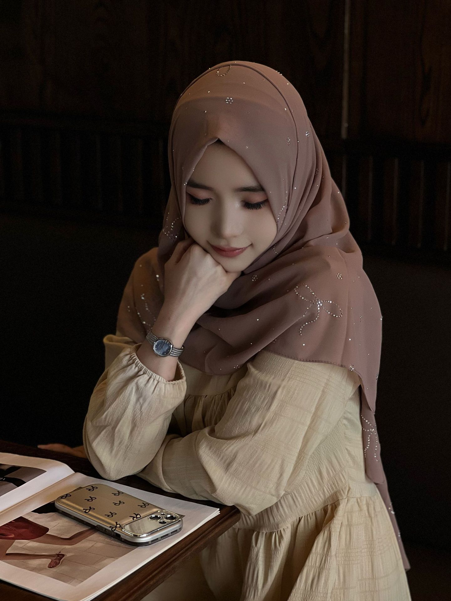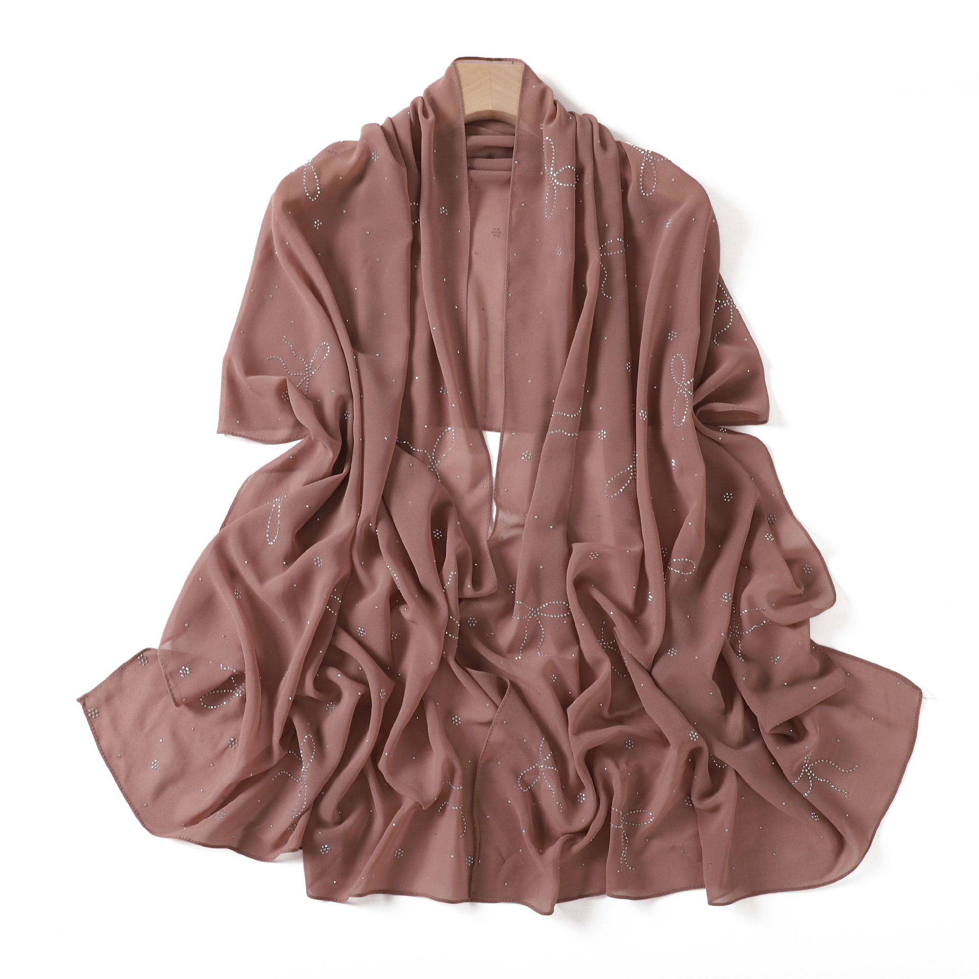 Elevate your look and faith with Salaam-Fashion's serene nude pink Hijab. Crafted from pure chiffon, it features a refined bow with rhinestones, offering sophistication and comfort. Perfect for daily prayers, Ramadan, and pilgrimage—embrace devotion with style and grace.
