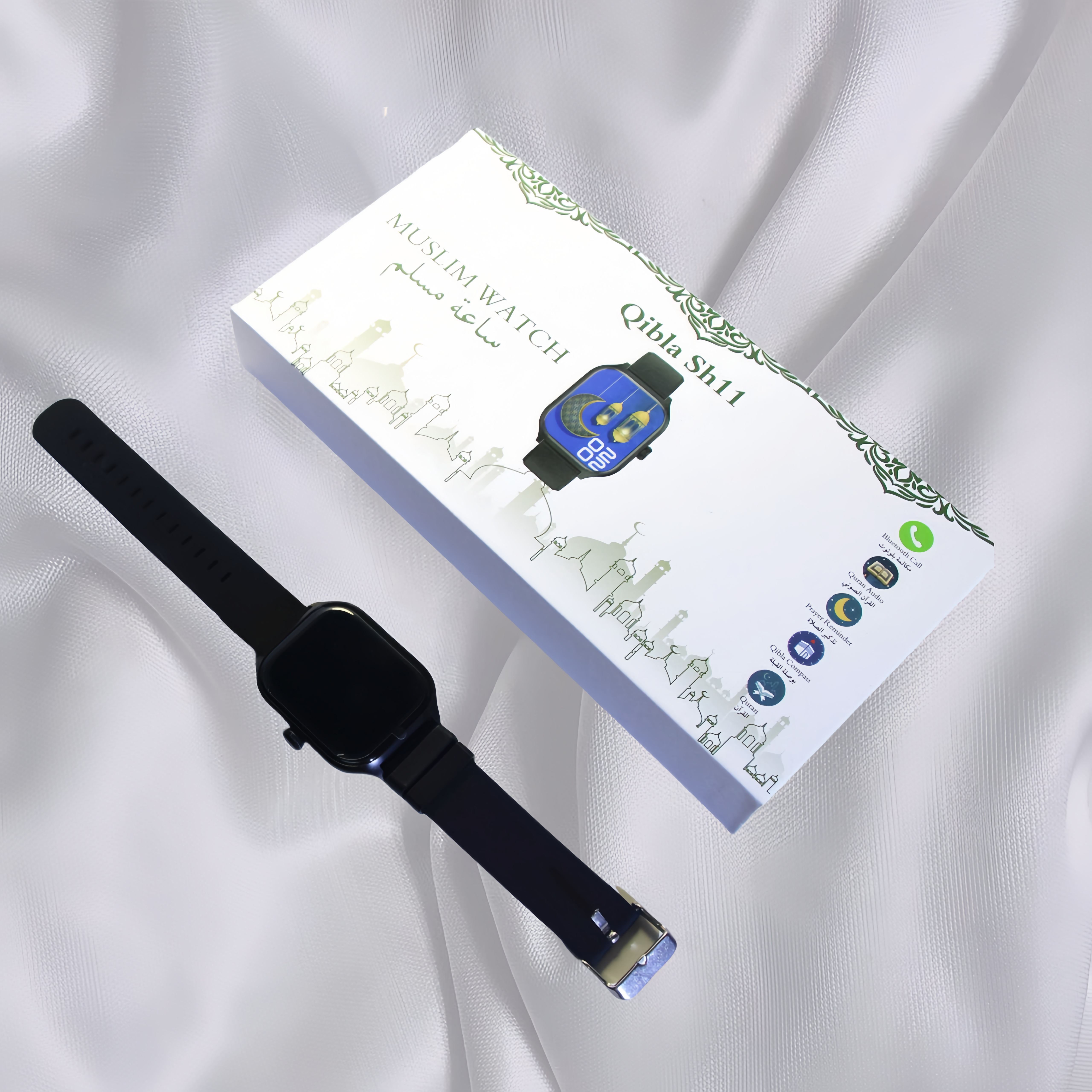 Salaam-Fashion's Muslim Smartwatch enhances worship with prayer alerts, a Qibla compass, and Quran reading.