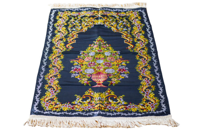 Embroidered Vase Design Prayer Mat - Elegant Comfort in Black (70x110 cm)