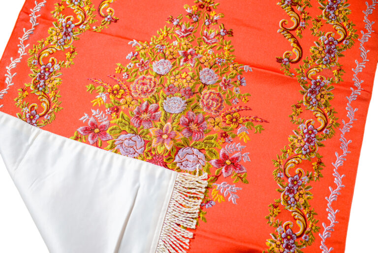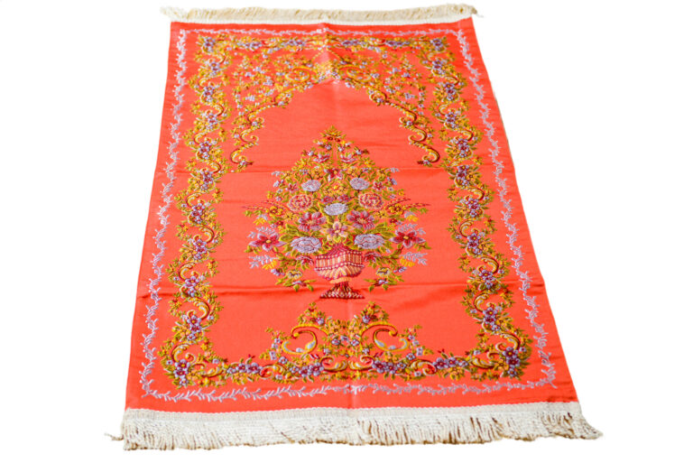 Embroidered Vase Design Prayer Mat - Vibrant Comfort in Orange-Red (70x110 cm)